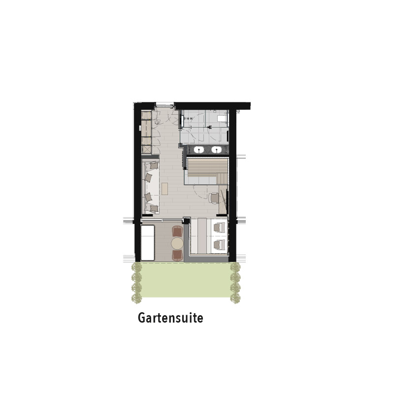 Die Gartensuite ist perfekt für Urlaubstage mit dem Hund geeignet, da sie über einen eingezäunten Gartenbereich verfügt.