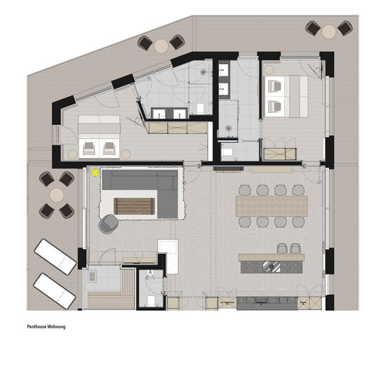 Die Penthouse Wohnung ist erweiterbar für bis zu 10 Personen mittels Zubuchung der Penthouse Doppelzimmer.