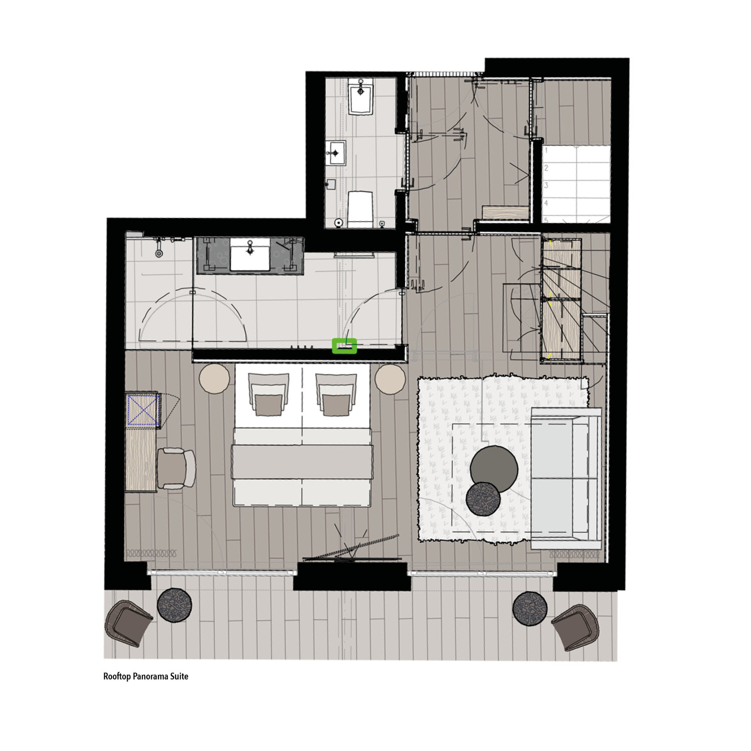 Die Rooftop Panorama Suite begeistert mit einem unglaublichen Blick auf den See und die umliegende Bergwelt.